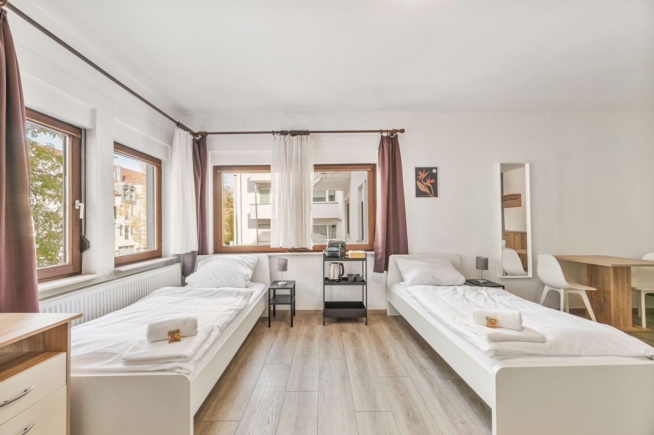 Region: Heilbronn Heilbronn 4er Zimmer mit Küche 4 Einzelbetten 1 Küche 1 Badezimmer Ø Balkon Ø Terrasse 35 Gesamtfläche (qm) Verfügbare Einheiten: 1 Ab 60 €/Nacht zur Buchung Alle unsere Apartments verfügen über den home2stay Standard Bequeme Betten – für einen erholsamen Schlaf Kühlschrank Highspeed-WLAN (kostenloses Internet) Grundausstattung an Toilettenpapier und Seife Waschmaschine/Trockner (wenn vorhanden in jeder Unterkunft oder zumindest zugänglich) Self Checkin 24/7 Parkmöglichkeit Bettwäsche und Handtücher werden kostenfrei gestellt Eigenes Badezimmer Smart-TV in jeder Unterkunft 1A Verkehrsanbindung Diese Apartments könnten Sie auch interessieren Alle anzeigen Ab 80 € Heilbronn 4er Apartment mit Küche 2 Zimmer Region: Heilbronn Standort: Heilbronn Ab 60 € Heilbronn 3er Apartment mit Küche 2 Zimmer Region: Heilbronn Standort: Heilbronn Ab 60 € Heilbronn 2er Apartment mit Küche und Terrasse Region: Heilbronn Standort: Heilbronn Eine unverbindliche Anfrage senden Vorname* Nachname* E-Mail Adresse* Wo suchen Sie? Entfernung zum Projekt Personenanzahl* Check-in* Check-out* Ihre Nachricht Senden
