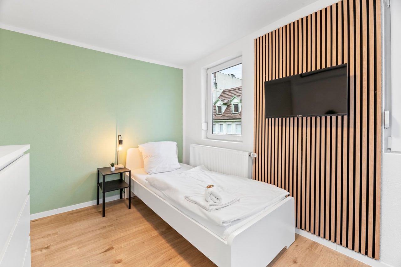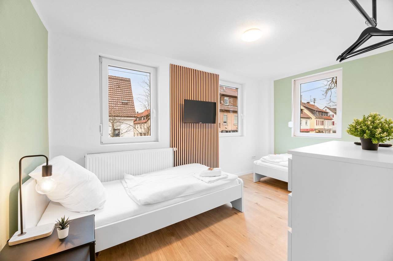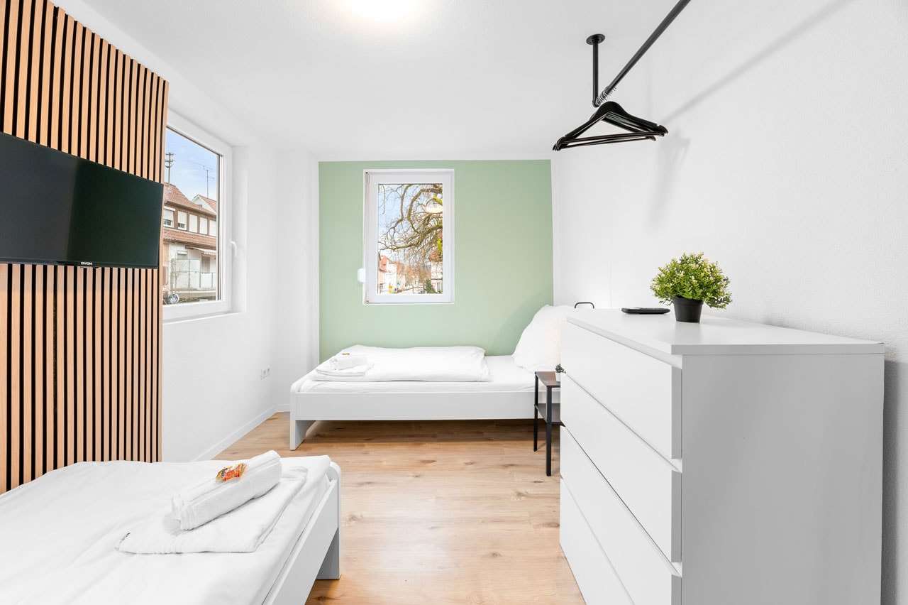Region: Stuttgart-Esslingen Nürtingen Apartment mit 3 Schlafzimmern BW13 6 Einzelbetten 1 Küche 1 Badezimmer Ø Balkon Ø Terrasse 80 Gesamtfläche (qm) Verfügbare Einheiten: 1 Ab 130 €/Nacht zur Buchung Alle unsere Apartments verfügen über den home2stay Standard Bequeme Betten – für einen erholsamen Schlaf Kühlschrank Highspeed-WLAN (kostenloses Internet) Grundausstattung an Toilettenpapier und Seife Waschmaschine/Trockner (wenn vorhanden in jeder Unterkunft oder zumindest zugänglich) Self Checkin 24/7 Parkmöglichkeit Bettwäsche und Handtücher werden kostenfrei gestellt Eigenes Badezimmer Smart-TV in jeder Unterkunft 1A Verkehrsanbindung Diese Apartments könnten Sie auch interessieren Alle anzeigen Ab 120 € Nürtingen Apartment mit 3 Schlafzimmern BW12 Region: Stuttgart-Esslingen Standort: Nürtingen Ab 100 € Nürtingen Apartment mit 2 Schlafzimmern BW13b Region: Stuttgart-Esslingen Standort: Nürtingen Eine unverbindliche Anfrage senden Vorname* Nachname* E-Mail Adresse* Wo suchen Sie? Entfernung zum Projekt Personenanzahl* Check-in* Check-out* Ihre Nachricht Senden